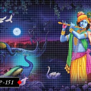 A spiritually rich poster showing Radha and Krishna in divine embrace.