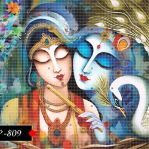 Radha and Krishna’s radiant faces and divine garments symbolize grace and purity. A subtle glow surrounds them, amplifying their sacred charm. A peaceful visual for spiritual connection.