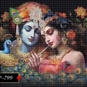 Radha and Krishna are shown in this poster with divine brilliance. Their ornamental attire and serene features exude spiritual power. A glowing presence surrounds them. A captivating image for spiritual inspiration.
