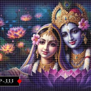 This sacred poster showcases Radha and Krishna’s celestial presence.