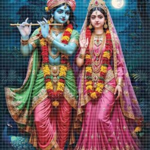 A divine poster that illustrates Radha and Krishna’s sacred togetherness.