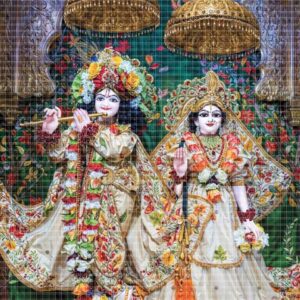 This divine image of Radhamadhab brings together serenity, devotion, and elegance. Their adorned forms express grace and inner stillness. The background enhances their divine essence, creating a peaceful spiritual atmosphere. An artwork that resonates with devotion and timeless spirituality.