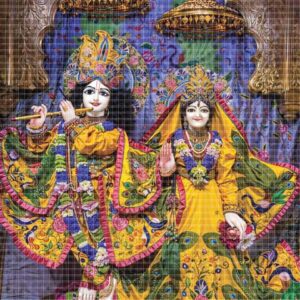 This poster of Radhamadhab reflects spiritual grace and divine majesty through detailed presentation. Their serene smiles and ornamental finery offer a sense of transcendental joy. The setting is rich in symbolic representation and devotional charm. A perfect addition to any sacred space.