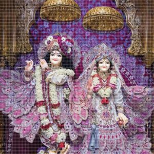 In this devotional image, Radhamadhab are portrayed in radiant divine attire with floral garlands and celestial expressions. Their presence creates an atmosphere of deep calm and sacred energy. The ornamental details highlight the richness of spiritual tradition. A poster that uplifts and connects the soul to the divine.