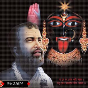 This holy depiction shows Ramakrishna Paramahamsa, enveloped in golden light. The towering presence of Goddess Kali in the background completes the image of divine harmony.