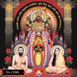 Ramakrishna Paramahamsa and Sarada Devi meditate beside the towering form of Goddess Kali 21086