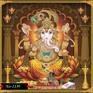 This radiant artwork of Lord Ganesha adorned with exquisite jewels and a majestic purple crown.