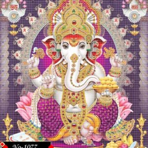 A majestic portrayal of Lord Ganesha radiating divine power and benevolence, adorned in ornate jewels and surrounded by lotus flowers, sacred symbols, and offerings. Set against a rich purple backdrop, this artwork exudes spiritual opulence and invites blessings of prosperity, wisdom, and good fortune into any space. Ideal for pooja rooms, festive decor, or auspicious gifting.