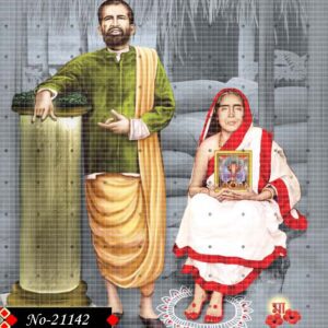 This sacred artwork presents Sri Ramakrishna Paramahamsa, Holy Mother Sarada Devi reflecting the pillars of spiritual enlightenment