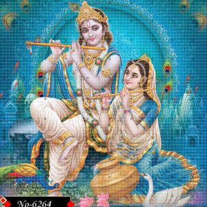 This sacred image of Radha Krishna is filled with vibrant symbolism.