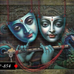 This sacred poster presents Radhakrishna in a moment of spiritual grace. Their expressive features and colorful attire captivate the heart. A divine light radiates from their forms. A devotional piece to elevate any space.