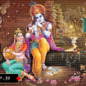 This sacred poster showcases Radha and Krishna’s celestial presence.