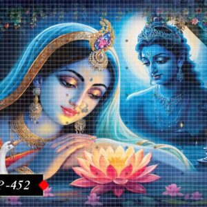 Sacred poster showcases Radha and Krishna’s celestial presence. 452