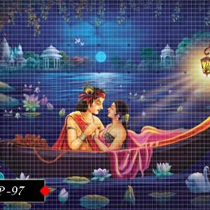 Sacred poster showcases Radha and Krishna’s celestial presence. 97