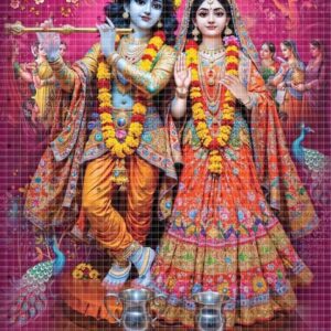 Sacred poster showcases the ethereal presence of Radha and Krishna. 774