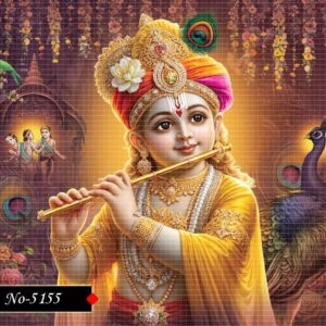 A breathtaking representation of Lord Krishna’s mythological grandeur – divine light surrounds his form, rich in color and sacred symbolism.