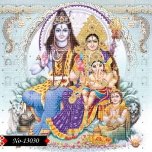 This divine image of Lord Shiva, Goddess Parvati, Lord Ganesha, and Lord Kartikeya radiates an eternal light of holiness and grace. Their shining ornaments and splendid attire reflect purity, love, and sacred harmony. Lord Shiva’s calm and meditative presence brings peace, while Parvati’s nurturing aura adds warmth and compassion. Together with Ganesha’s blessings of wisdom and Kartikeya’s valor, this sacred vision becomes a complete symbol of strength, devotion, and spiritual bliss.