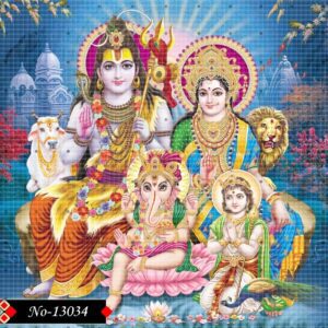 The celestial portrayal of the divine family—Shiva, Parvati, Ganesha, and Kartikeya—glows with timeless brilliance. The radiant aura flowing from them creates an atmosphere of peace and reverence in the hearts of devotees. Each form represents an eternal value: Shiva stands for stillness, Parvati for love, Ganesha for auspiciousness, and Kartikeya for courage. United, they embody completeness, reminding us of the beauty of faith, devotion, and divine protection.