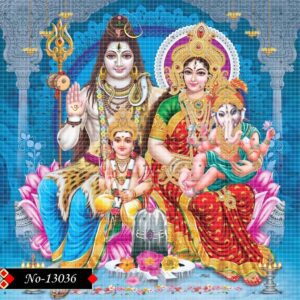 In this magnificent portrayal, the family of Lord Shiva glows with an aura of sanctity and eternal grace. Each member represents a vital aspect of life’s spiritual journey—Shiva’s calm reflects wisdom, Parvati’s compassion radiates love, Ganesha brings blessings of prosperity, and Kartikeya inspires courage. The divine light from this sacred image surrounds devotees with peace and strength. It is not just a picture, but a symbol of completeness, devotion, and inner power.