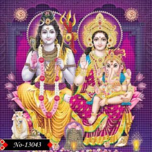 The celestial portrayal of the divine family—Shiva, Parvati, Ganeshaglows with timeless brilliance. The radiant aura flowing from them creates an atmosphere of peace and reverence in the hearts of devotees. Each form represents an eternal value: Shiva stands for stillness, Parvati for love, Ganesha for auspiciousness. United, they embody completeness, reminding us of the beauty of faith, devotion, and divine protection.