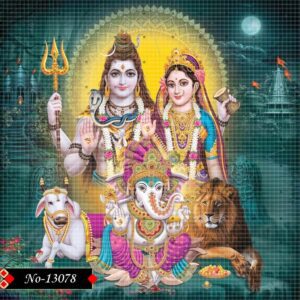 This divine image of Lord Shiva, Goddess Parvati, Lord Ganesha, and Lord Kartikeya radiates an eternal light of holiness and grace. Their shining ornaments and splendid attire reflect purity, love, and sacred harmony. Lord Shiva’s calm presence brings peace, while Parvati’s nurturing aura adds warmth and compassion. Together with Ganesha’s blessings of wisdom this sacred vision becomes a complete symbol of strength, devotion, and spiritual bliss.