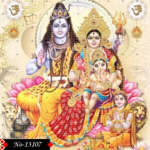 The sacred presence of Lord Shiva, Goddess Parvati, Ganesha, and Kartikeya in this image glows with timeless divinity. The shining ornaments and heavenly attire they wear symbolize purity and devotion, reflecting the eternal beauty of the spiritual world. Lord Shiva inspires balance and meditation, Parvati blesses with love and compassion, Ganesha bestows wisdom and prosperity, while Kartikeya encourages strength and courage. As a family, they radiate unity and completeness, blessing devotees with peace and faith.