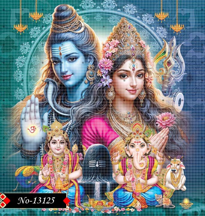 This divine portrayal of Lord Shiva, Parvati, Ganesha, and Kartikeya radiates an everlasting aura of peace and holiness. Their celestial light fills the mind with reverence and the heart with devotion. Lord Shiva’s calm presence provides balance, Parvati’s warmth conveys compassion, Ganesha’s charm blesses with prosperity, and Kartikeya’s courage inspires strength. Together, they form a complete picture of unity, purity, and divine inspiration for every devotee.