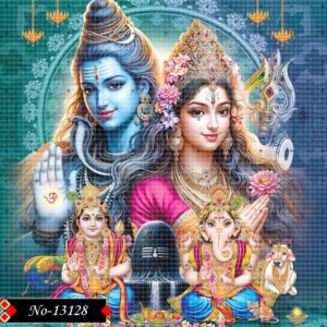The divine family of Lord Shiva, Parvati, Ganesha, and Kartikeya radiates eternal grace and spiritual energy in this blessed vision. Lord Shiva stands as the symbol of serenity and supreme consciousness, while Parvati reflects unconditional love and motherly protection. Ganesha, with his auspicious charm, bestows wisdom and prosperity, while Kartikeya radiates valor and courage. Their united presence embodies wholeness, harmony, and eternal spiritual strength for every devotee.