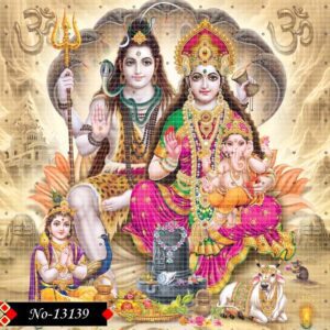 The celestial portrayal of the divine family—Shiva, Parvati, Ganesha, and Kartikeya—glows with timeless brilliance. The radiant aura flowing from them creates an atmosphere of peace and reverence in the hearts of devotees. Each form represents an eternal value: Shiva stands for stillness, Parvati for love, Ganesha for auspiciousness, and Kartikeya for courage. United, they embody completeness, reminding us of the beauty of faith, devotion, and divine protection.