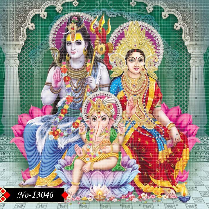 This divine image of Lord Shiva, Goddess Parvati, Lord Ganesha, and Lord Kartikeya radiates an eternal light of holiness and grace. Their shining ornaments and splendid attire reflect purity, love, and sacred harmony. Lord Shiva’s calm and meditative presence brings peace, while Parvati’s nurturing aura adds warmth and compassion. Together with Ganesha’s blessings of wisdom and Kartikeya’s valor, this sacred vision becomes a complete symbol of strength, devotion, and spiritual bliss.