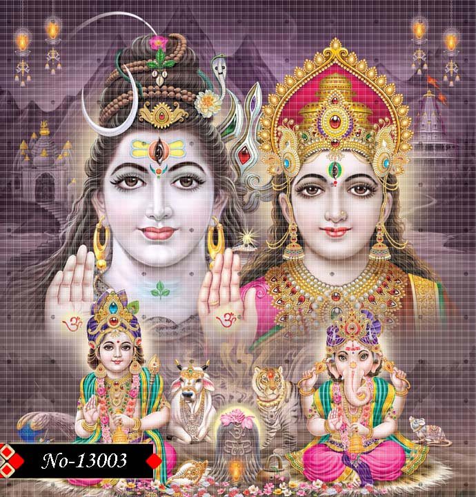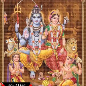 The holy image of Lord Shiva’s family radiates divine splendor, adorned with ornaments and divine attire that shimmer with celestial light. Lord Shiva’s meditative calmness is complemented by Parvati’s motherly affection, creating an atmosphere of balance and serenity. Lord Ganesha’s auspicious presence brings prosperity and wisdom, while Kartikeya’s bravery symbolizes strength and determination. Together, this divine family becomes a guiding light of faith, purity, and eternal inspiration.