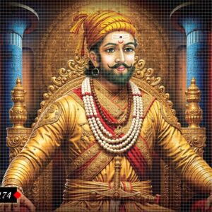 This poster shows Shivaji Maharaj as a timeless icon of Indian valor.