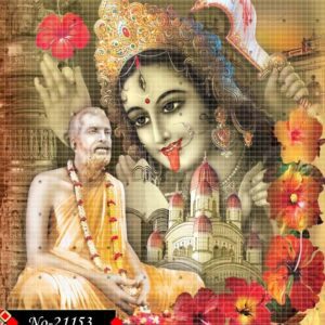 This blessed artwork captures Sri Ramakrishna beneaths the sacred gaze of Goddess Kali. His expression is serene, and the celestial light surrounding them evokes grace and eternal devotion.