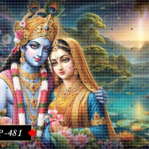 Spiritual poster illustrates the sacred union of Radha and Krishna. 481