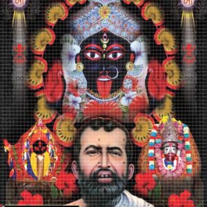 This powerful visual captures Sri Ramakrishna beneath the divine light of Goddess Kali.The artwork resonates with spiritual purity and eternal devotion.
