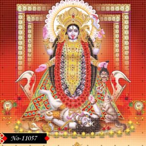 In this stunning depiction, every feature of Goddess Kali speaks in metaphors. Her darkness the mystery of the cosmos, and her blood-red tongue the intensity of awakening. Stepping on Shiva is not violence — it is the surrender of consciousness to divine energy. The garland of skulls represents ego death and spiritual wisdom gained. Her four arms direct the flow of time, karma, destruction, and rebirth. The red hibiscus flowers echo passion, sacrifice, and life itself. Even the golden border signifies her supreme status in the cosmic hierarchy. This image is less about form and more about meaning — it challenges the viewer to see beyond the fearsome, into the eternal truth she embodies.