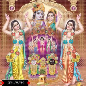 The dance of Gour and Nitai breathes life into this sacred image, as their traditional attire flows with every movement. The divine glow of Radha-Krishna and Jagannath, Balram, and Subhadra completes the scene, illuminating the power of spiritual love.