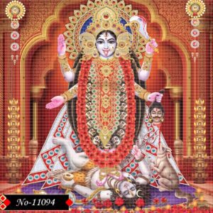 This vibrant and intense image of Goddess Kali radiates both terror and tenderness. Her terrifying form, decorated with skulls and drenched in symbolism, initially evokes fear.