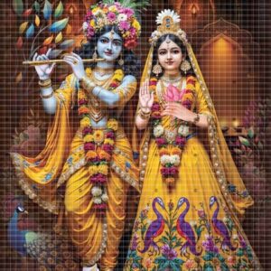 This traditional poster reflects the joyful bond of Radha and Krishna.