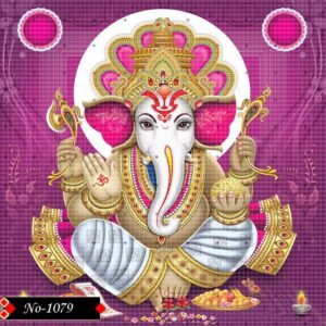 A graceful and calming representation of Lord Ganesha, set against a soft magenta backdrop. Dressed in elegant white and gold, this artwork highlights the serene and composed nature of the beloved deity, surrounded by traditional symbols of prosperity, modaks, and blessings. Perfect for homes, offices, or spiritual corners to invite peace, wisdom, and success.
