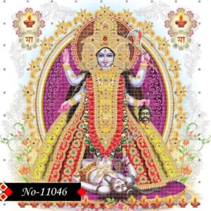 This vibrant and intense image of Goddess Kali radiates both terror and tenderness. Her terrifying form, decorated with skulls and drenched in symbolism, initially evokes fear. But as you gaze deeper, her posture over Shiva and her compassionate hands reveal her as the divine protector. Her weapons do not destroy the innocent but defend the righteous. The tongue, so often seen as feral, becomes a symbol of her uncontrolled love for truth and dharma. The background blooms with red flowers, softening the image’s starkness and reminding us of her maternal heart. Each detail — from the tiger skin beneath Shiva to the divine aura around her — speaks of her role as both destroyer and guardian. She is fierce, but fiercely loving.