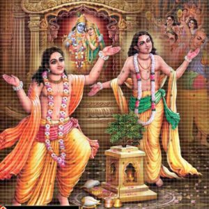 This vibrant image captures Gour and Nitai immersed in devotional dance, radiating bliss and spiritual love.