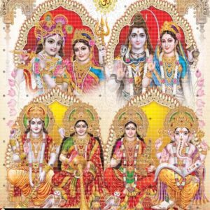 This vibrant poster brings alive the celestial charm of Hindu deities.